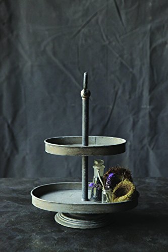 Creative Co-Op Oval Metal 2-Tier Tray, Zinc