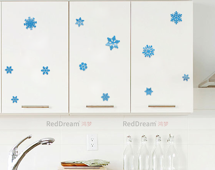浪漫雪花圣诞节装饰3D立体客厅门窗厨房柜卧室创意背景自粘墙贴画