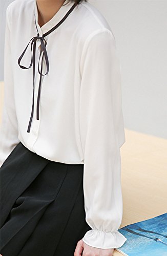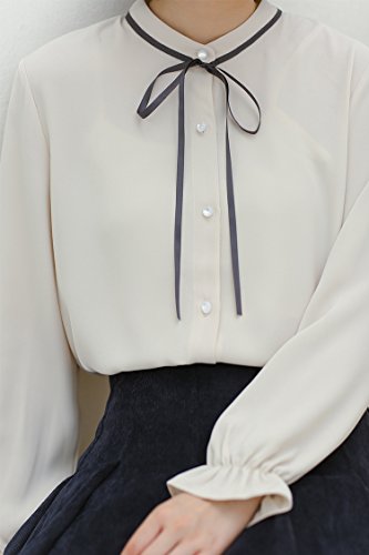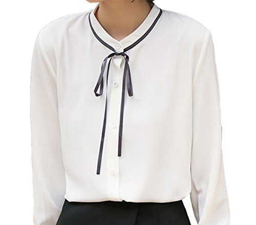 -. Title : (エンジェルムーン) AngelMoon ブラウス レディース 長袖 シフォン リボン シャツ 清楚 オフィス エレガント 通勤