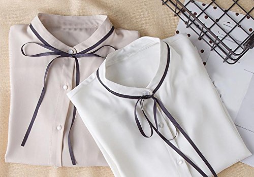 -. Feature : キリッとした印象のスタンドカラーに、細身の黒いリボンがキュートさをプラスした、カジュアルにもエレガントにも着こなせる、フェミニンなブラウスです。袖口が、きゅっと絞られたフリルになっているので、女性らしさもUPします。 / サラッとした素材でできているので、トップスとしてもインナーとしても心地よく使える1枚。春や初夏などはトップスとして、秋や冬はインナーとして、大活躍してくれます。シンプルめのデザインなので、どんなアウターやボトムスとでも合わせやすいのもポイント。 / カラー:ホワイト、ベージュ メイン素材:ポリエステル セット内容:ブラウス サイズ:S、M、L、XL(※サイズは商品画像、商品説明に記載しております。海外製の為、日本の一般的なサイズ感よりもやや小さめに作られている場合がございます。ご購入いただく際は、サイズ表をご確認くださいませ。) / 飽きのこないブラウスは、お仕事やビジネス、通勤や営業などのフォーマルな場面でも使えますが、ホームパーティーやお誕生日会などのカジュアルなお呼ばれにも、きれいめシャツとして着こなしできる、可愛いブラウスセレクト。礼服やスーツなどのフォーマルセットアップにも欠かせないアイテムは、春夏秋冬、季節を問わずにオールシーズンで活躍します。ストールやスカーフなどのファッション小物とも相性バツグン。足元は、ブーツやブーティはもちろん、ヒールやパンプスなどと合わせると、こなれ感がUPします。 / AngelMoon(エンジェルムーン)はブラウス、ワンピースをはじめ、チュニック・シャツ・カットソー・セーター・カーディガン・トレーナー・パーカー・キャミソール・タンクトップなどのアウターやインナー、タイトスカート・ミニスカート・ロングスカート・ワイドパンツ・ガウチョパンツ・スキニー・レギンス・サブリナパンツ・チノパンなどのボトムス、ウィッグ、ストール、スカーフ、バッグなどのファッション小物など、オールシーズン着られるものや、春、夏、秋、冬、の季節に合わせ、年齢を問わずおしゃれを楽しんでいただける、トレンドを押さえたレディースファッションを取り揃えています。