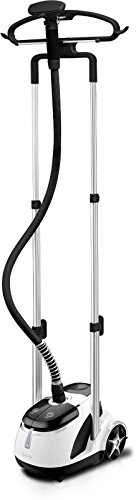 The SALAV GS45-DJ Professional Garment Steamer features a dual telescopic bar support for added stability and to protect against tilting. The powerful 1500-watt GS45-DJ has convenient power & steam setting pedals that are ergonomically located for easy access. The GS45-DJ garment steamer also has an easy-to-fill removable translucent water tank with 1.8L capacity to provide continuous steam for up to 60 minutes and heats up in just 45 seconds. The fashion forward GS45-DJ also contains SALAV patented features including a multifunctional hanger and a double insulated hose to maintain steam temperature and regulate hose surface heat. Package includes: SALAV GS45-DJ Garment Steamer, Warranty Card, Owner Manual, Pants Press, Fabric Brush, Two Hanger Clips, and Mini Ironing Paddle.Feature