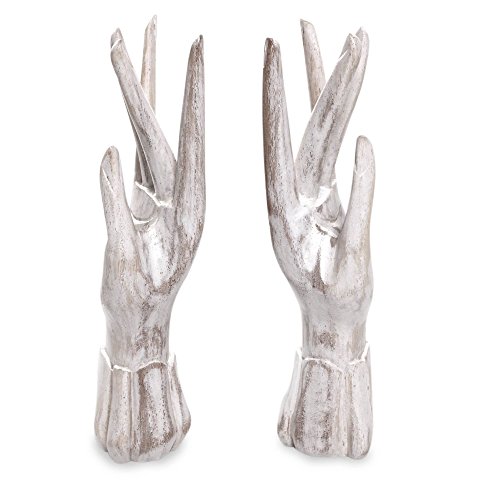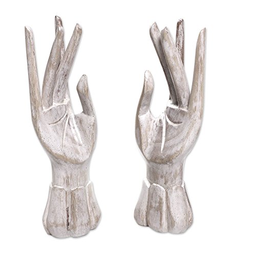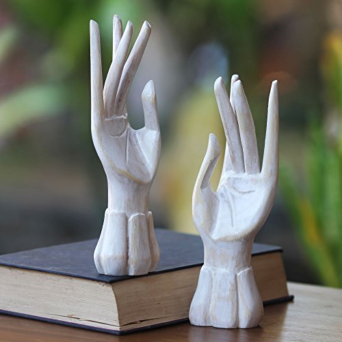 NOVICA Artisan Crafted Natural Jempinis Wood Jewelry and Ring Holder, White, 'Fairy Hands' (Pair)