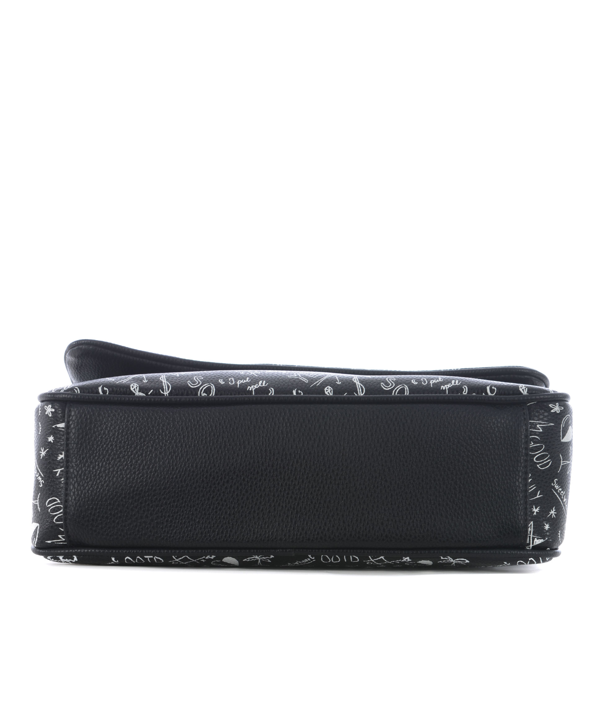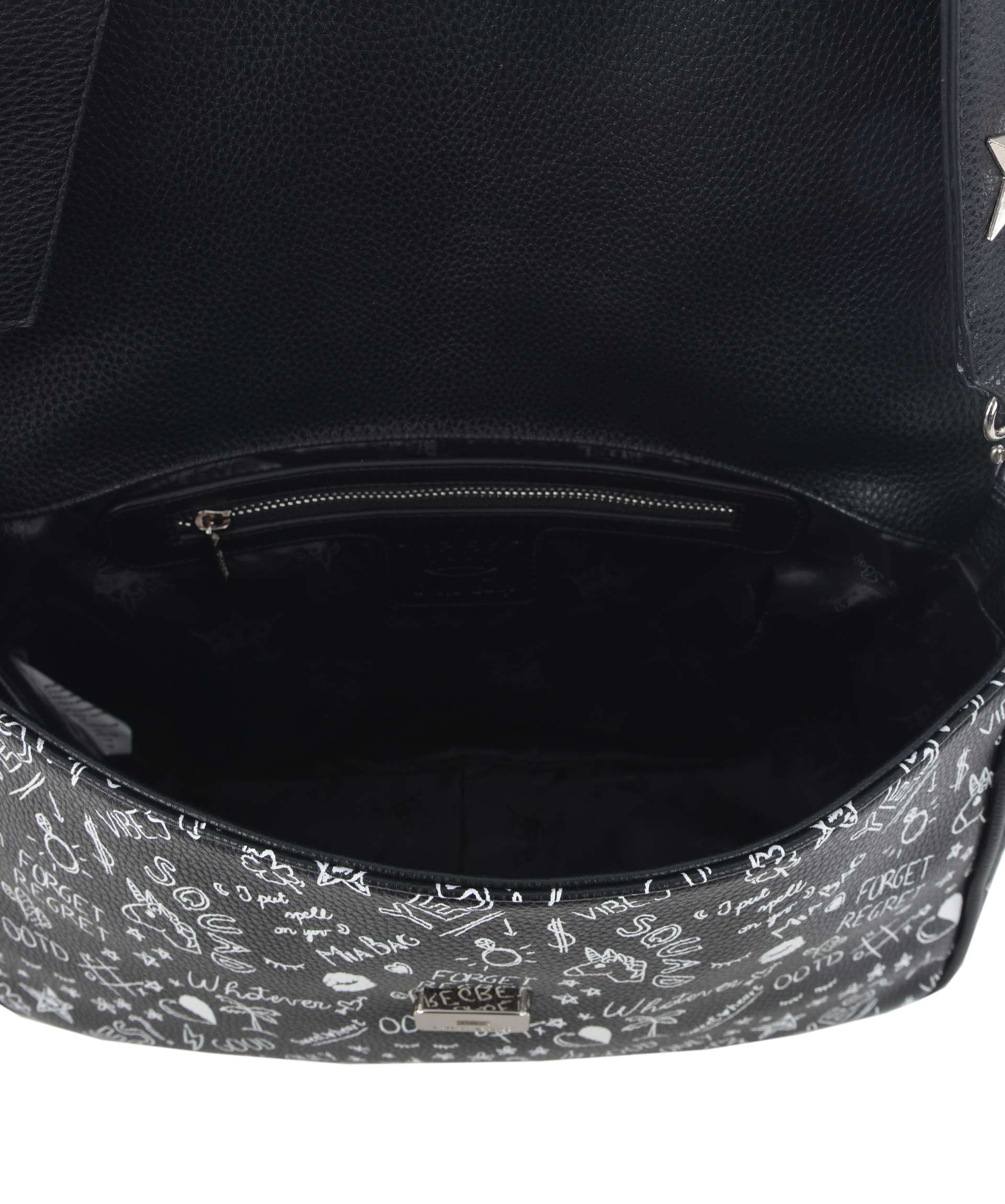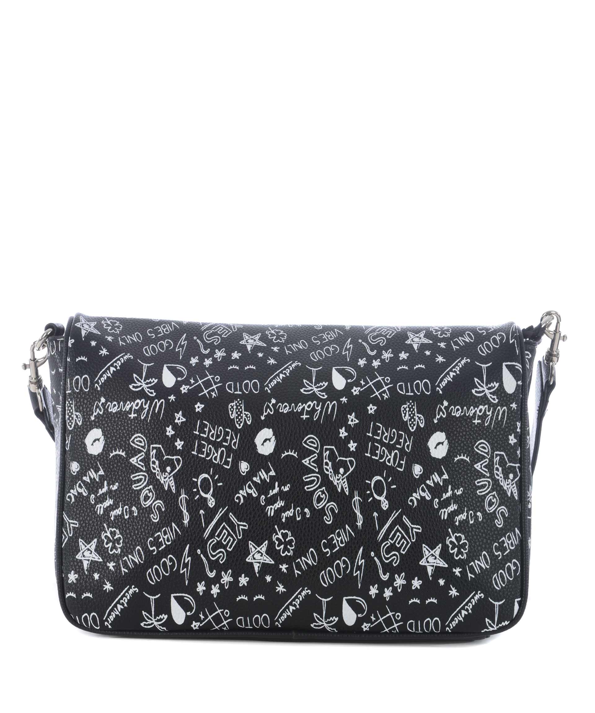 Borsa Mia Bag in ecopelle Nera. Stampa graffiti su tutta la superficie. Logo frontale in metallo argentato. Manico in ecopelle removibile decorato con stelle in metallo. Patta frontale con apertura ad incastro. All'interno tasche applicate, tasca con zip. Fodera logata. Rifiniture in metallo dorato.