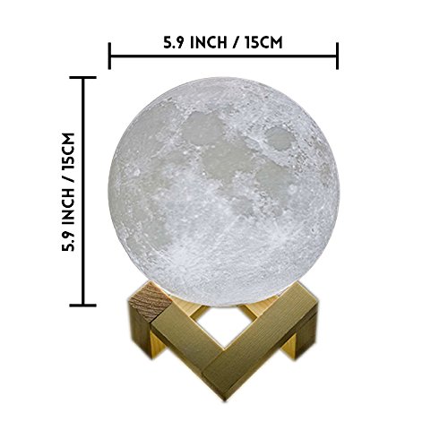 REALISTIC Luna Moon Lamp 5.9in 15cm 3D Printed Bedside LED Touch Sensor Dimmable Rechargeable Baby Nursery Lamp Kids Desk Lamp Novelty...