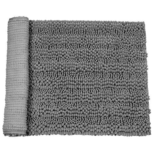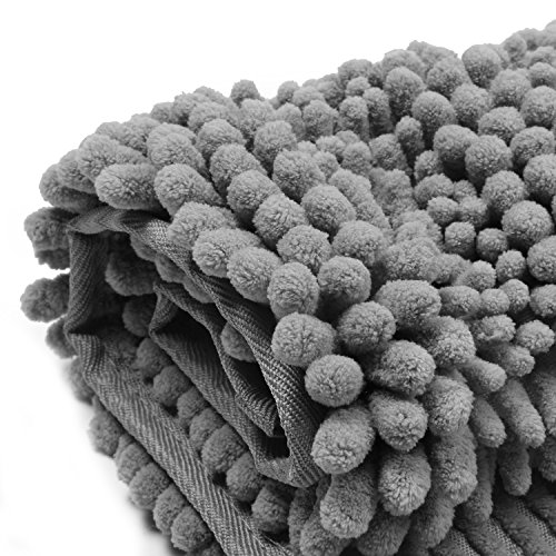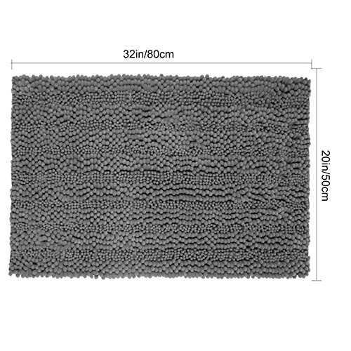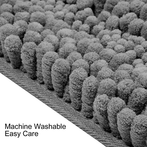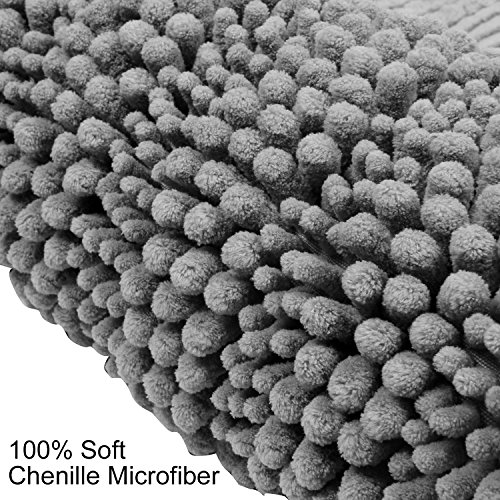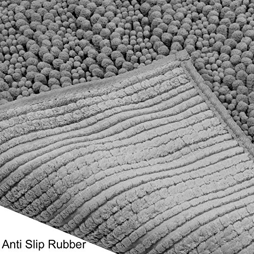 Pauwer Microfiber Bath Rugs Non Slip Bath Mat Absorbent Chenille Bathroom Shower Rug Machine Washable (20"×32" Grey)