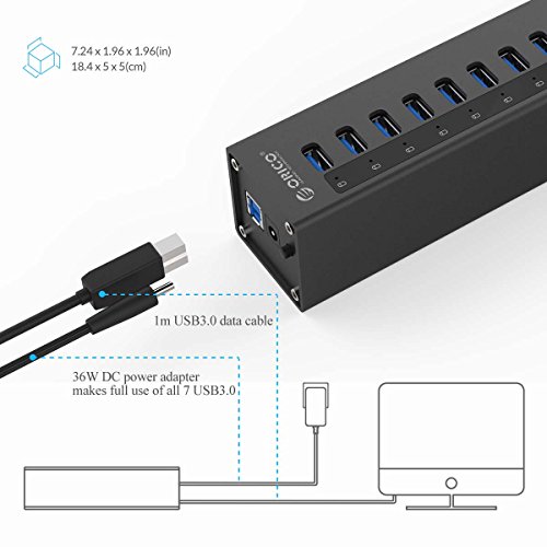 -. Title : ORICO Aluminum HUB with 12V2.5A Power Adapter and 3.3Ft. USB3.0 Date Cable