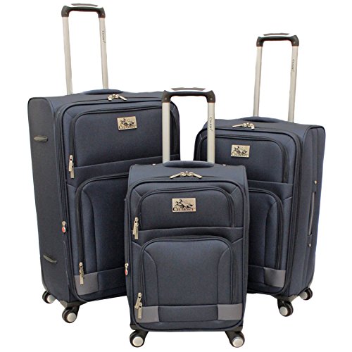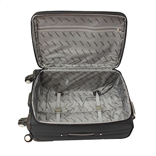 -. Feature : Lightweight 1200d polyester construction, 25 percent expandable, organizational pockets, fully lined interior, 360 degree spinner wheels, retractable handle, silver pewter hardware, rear id holder, padded top and side grip handles / 20 inch carry-on dimensions: 21.5 inch h x 9.5 inch w x 13.5 inch l - 7.8 lb / 24 inch uP.R.Ight dimensions: 25.5 inch h x 10.5 inch w x 15.5 inch l - 9 lb / 28 inch uP.R.Ight dimensions: 29 inch h x 12.5 inch w x 17.5 inch l - 10.2 lb / 17.5" x 12.5" x 29"