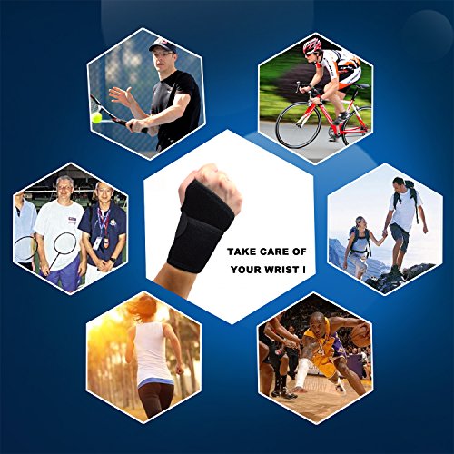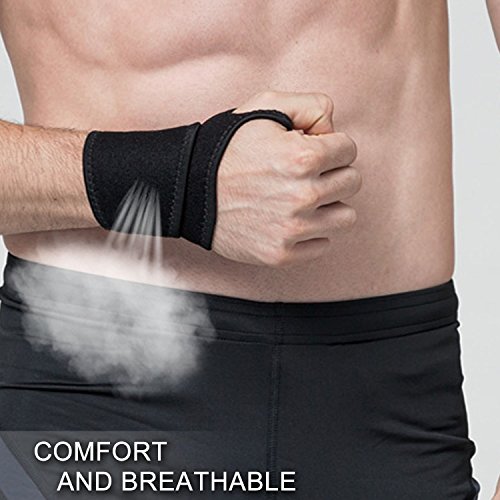 -. Feature : Exquisite workmanship with high quality fabric and Velcro make it comfortable to wear. Durable and strong Velcro strap to secure the wrist brace from moving around. / Stretches to provide comfortable compression and support for weak or stressed wrists. Helps relieve weak or sore wrists. Gentle compression to protect the wrist and minimize the risk of injury. / Ideal for acute and chronic wrist injury protection and recovery. Helps reduce pain from tendon and joint inflammation. Perfect for basketball, gym, badminton, tennis, volleyball, weightlifting, sports injuries, carpal tunnel, tendonitis and more. / Special thumb hole design gives support and protection to your thumb from strains, sprains, arthritis and muscle pain. / Adjustable compression strap for fit and support. Use on right or left wrist. Wrap around style is easy to put on and take off. Thumb loop makes wrap around easy to put on and take off.
