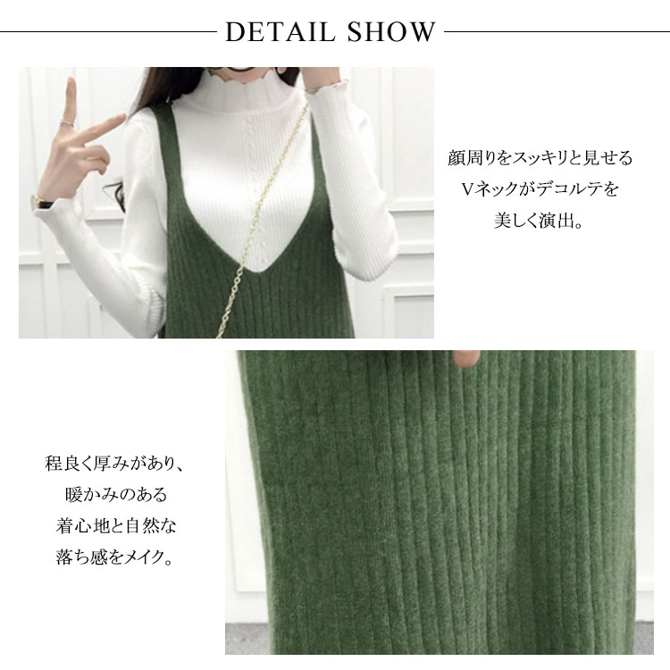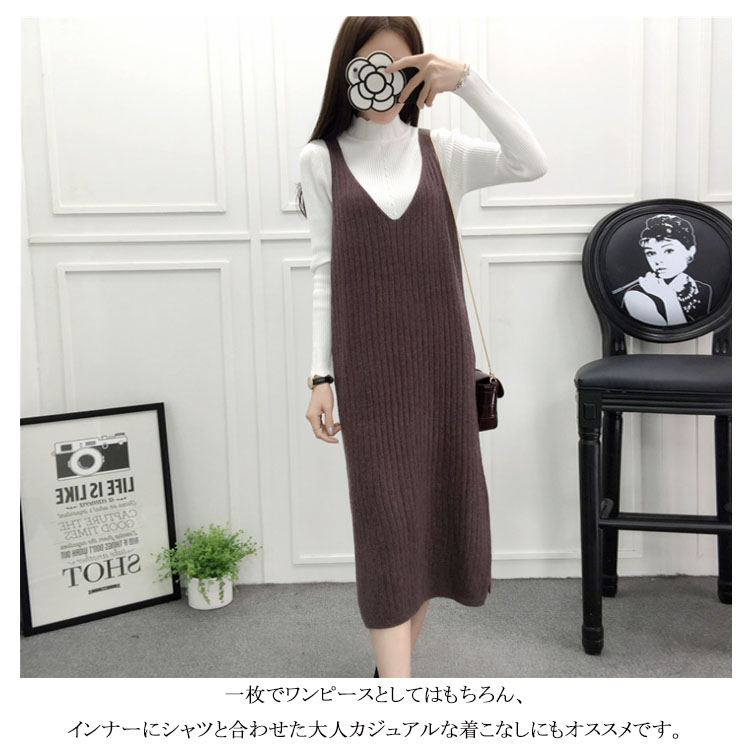 | 女気たっぷりシンプルLOOK♪Vネックニットワンピース!カシミアにも劣らないっ♪着心地バツグン、毎日でも着ていたい至福の心地よさをご提供いたします♪ シンプルデザインだから着回しがきき、秋冬コーデのベースになる頼れる一枚です♪一枚でワンピースとしてはもちろん、インナーにシャツと合わせた大人カジュアルな着こなしにもオススメです。 | |