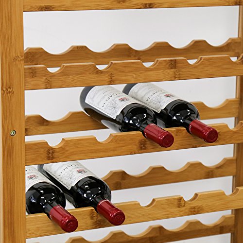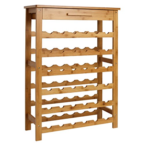 Kinbor 36-bottle wine rack offers compact and economical housing for all those special vintages. Stacked six rows high and only six holders across, this solid/composite bamboo stand capitalizes on its vertical design and features a solid countertop for display and serving. Light and airy, this rack doesn't take up much visual space either, so it's more about adding ambiance than bulky furniture. The rack measures approximately 26 inches wide by 11.4 inches deep by 37 inches high. Simply assembly is required. Specification: -Material: Bamboo -Color: Natural -Overall Size:26"Lx11.4"Wx37"H -Product Weight: 18 Lbs 0 |