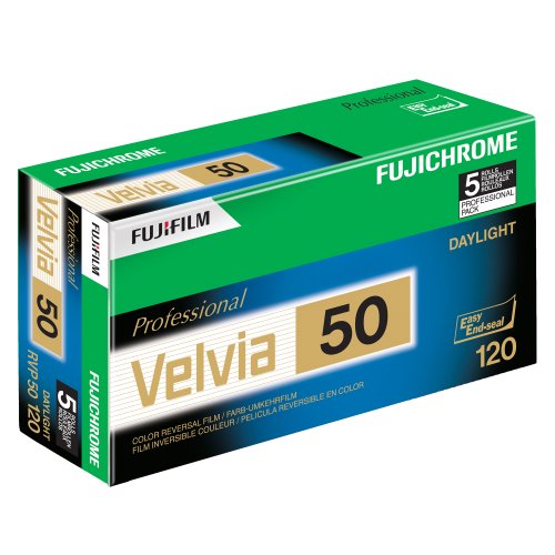 Fujifilm 16329185 Fujichrome Velvia 120mm 50 Color Slide Film ISO 50 - 5 Roll Pro Pack (Green/White/Purple)