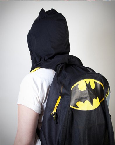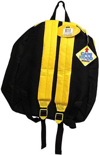 Product DescriptionThis backpack features a Batman Hood,Cape, and the Batman logo. It includes a zippered pouch on the front and adjustable straps on the back. 12"w x16"h0