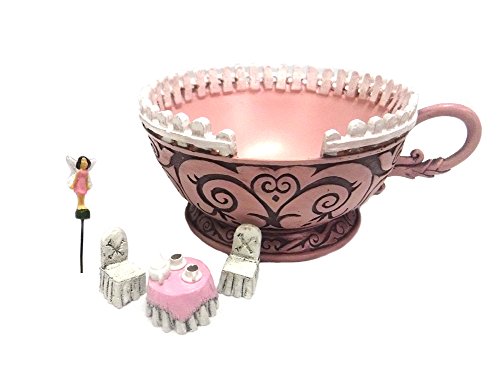 Georgetown Home & Garden, The Fiddlehead Fairy Garden, Wonderland Pink Tea Cup Planter 5 Pc. Set, Includes Planter, Micro Tea Party & Micro Fairy.
