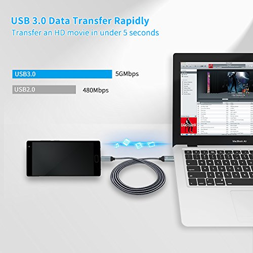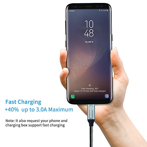 SECURITY & SPEED: Built in 56k OHM identification resistor ensures a safer charging at 3.0A Maximum. Kimwood USB C cable will get your phone fully charged from dead in 2 hours or less.The speed of data sync up to 5 Gbit/s (10x faster than USB 2.0). It transfers an HD movie in 5 seconds.