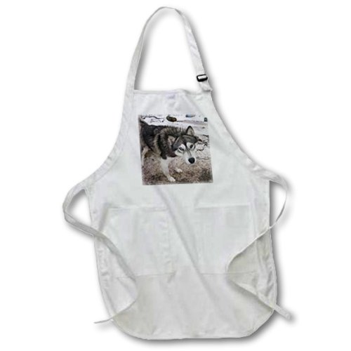 3dRose apr_37661_1 Arctic Sledding Dog Churchill Manitoba Canada Full Length Apron with Pockets, 22 by 30-Inch, White
