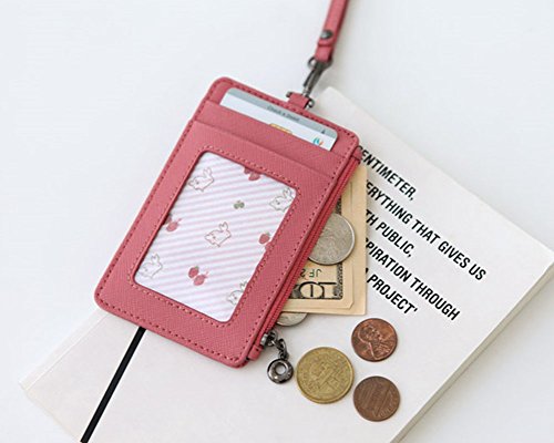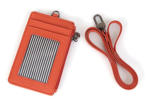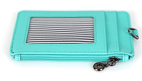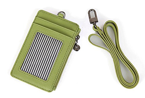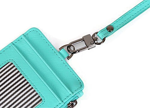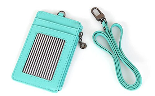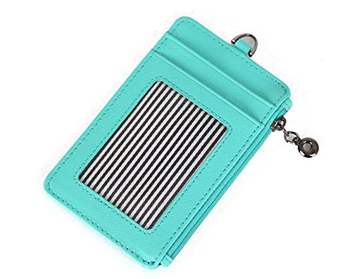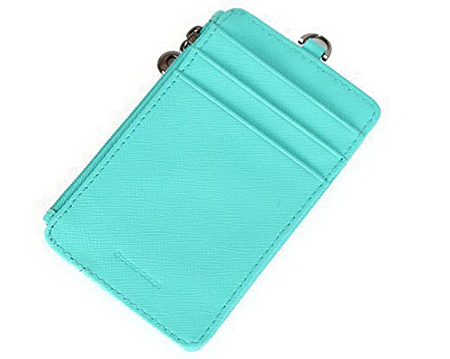 Genuine Leather Slim Bills & Credit Card Holder Id Card Case Holder Useful Purse with Neck Strap (Mint)
