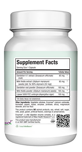 -. Binding : Health and Beauty -. Brand : Maxi-Health -. Feature : Gluten free standardized dandelion root and milk thistle complex / Supports healthy liver function / Useful a general system stimulant / Works to protect against live damage, including alcohol induced liver damage / Enhances the activity of erythrocytes and lymphocytes -. Label : Maxi Health -. LegalDisclaimer : These statements have not been evaluated by the Food and Drug Administration. This product is not intended to diagnose, treat, cure, or prevent any diseases. -. Manufacturer : Maxi Health -. ProductGroup : Health and Beauty -. ProductTypeName : HEALTH_PERSONAL_CARE -. Publisher : Maxi Health -. Studio : Maxi Health -. Title : Maxi Health Livamax