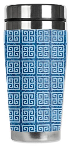 Mugzie 992-MAX "Greek Key Pattern" Stainless Steel Travel Mug with Insulated Wetsuit Cover, 20 oz, Black