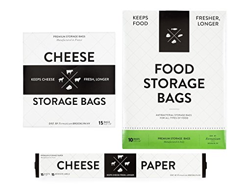Formaticum Collection - Cheese Storage Bags (15), Food Storage Bags (10) and Cheese Storage Paper with Adhesive Labels (15)
