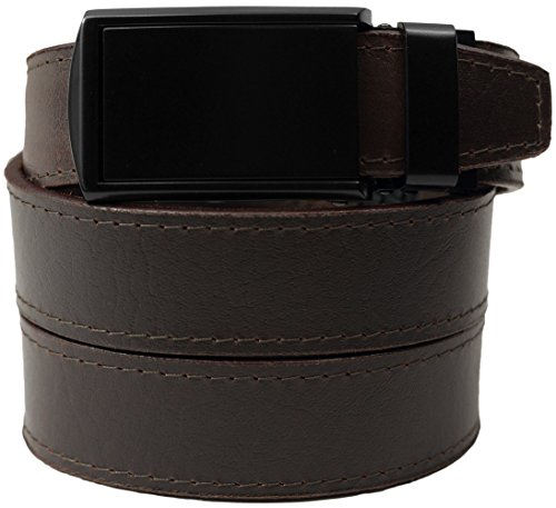 What is a SlideBelts brand ratchet belt? It's a leather belt that lets you freely adjust your belt size without the limitation of holes in the leather. In fact, there are no holes at all! A tab in the buckle catches on a row of notches sewn onto the underside of the leather, allowing for over 30 size options with 1/4" (6.35 mm) between adjustments. All SlideBelts come with a belt strap that can be trimmed to your exact waist size. The full length of one of our straps fits a 48" (122 cm) waist size. All buckles are completely removable and interchangeable with compatible SlideBelts products. Try SlideBelts out and see why there's no reason to poke holes in a perfectly good piece of leather.Feature