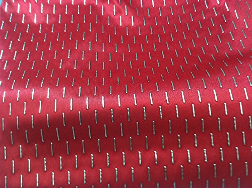 Ruby Red Power Mesh Satin Fabric with Sparkling Silver Small Design 3 Yds,, 60'' W