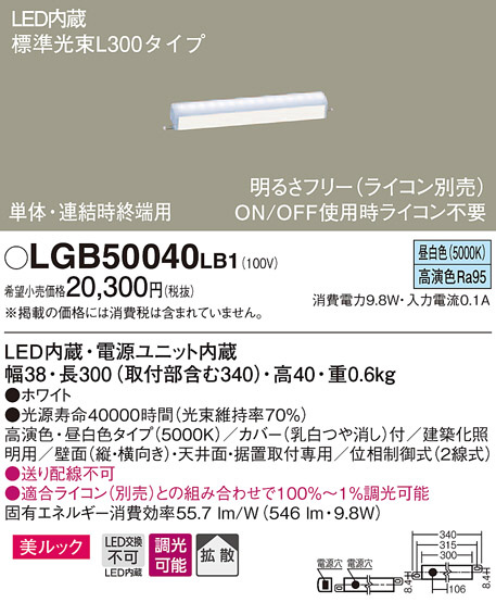 ●寸法(mm):幅38・長300(取付部含む340)・高40
