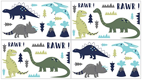 Blue and Green Modern Dinosaur Girl or Boy Baby and Kids Wall Decal Stickers - Set of 4 Sheets