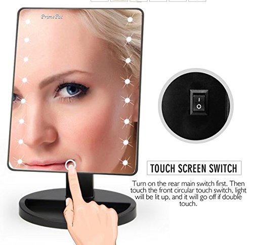 - TOUCH SENSOR TECHNOLOGY: you can control the LED lights with a touch sensor in the front, and the main ON/OFF switch on the back of the mirror. This will conserve energy and the life of the batteries. The mirror is extremely well designed to make our daily life just a little bit easier. See yourself in the best light possible.