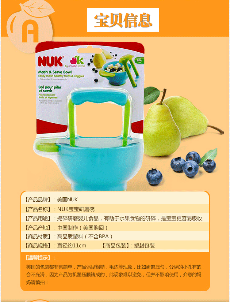 Baby Grinder/NUK Bowl Food Scissors Handmade Vegetables Fruit Mud Barbed Mashware Baby Feeder 23390
