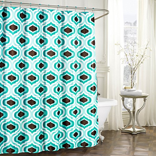 Creative Home Ideas Faux Linen Textured 13-Piece Shower Curtain with Metal Roller Hooks, Letto in Turquoise/Espresso