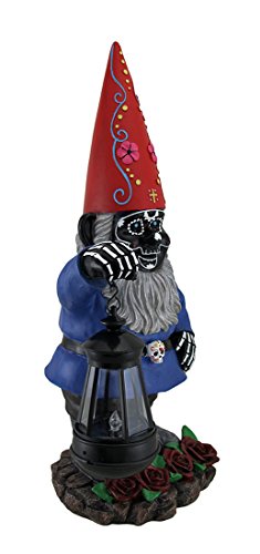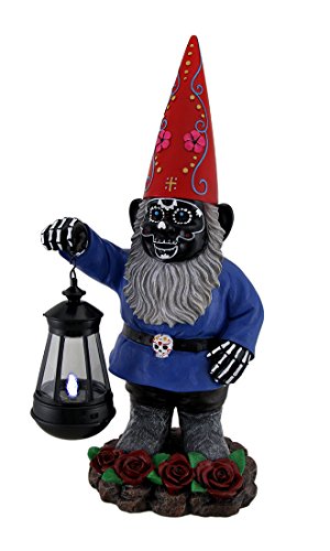 Resin Outdoor Statues C/O Light Of The Dead Black Sugar Skull Garden Gnome Solar Lantern Statue 16 In. 7.5 X 16.5 X 6 Inches Blue