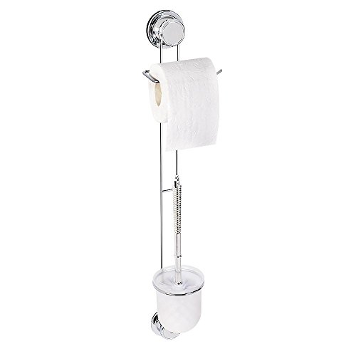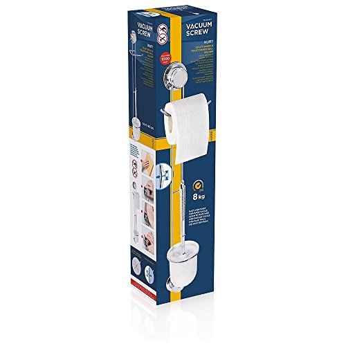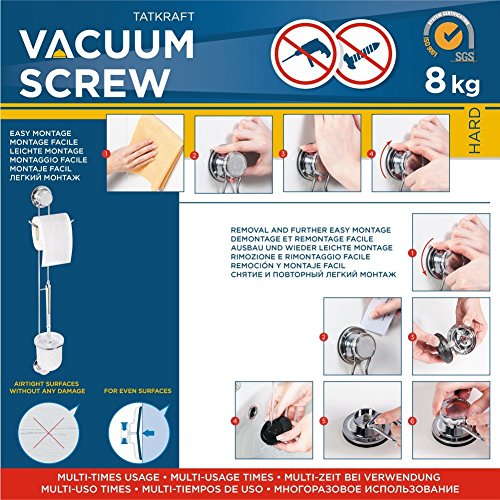 Tatkraft Kurt Vacuum Screw HARD Toilet Roll Holder & Toilet Brush Holder 13.6X11X60 cm Anti Rust 4-Layered Chromed Steel