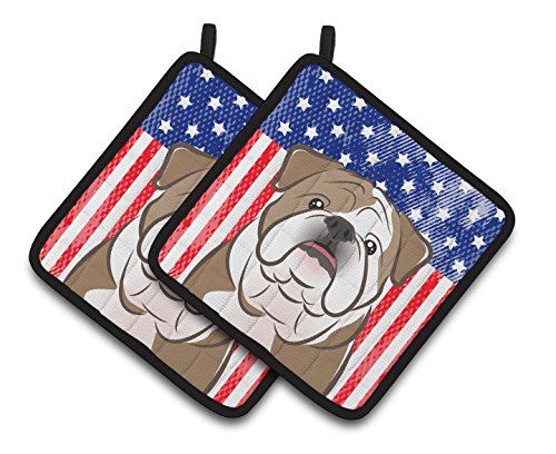 Caroline's Treasures American Flag & English Bulldog Pair of Pot Holders BB2149PTHD, 7.5HX7.5W, Multicolor