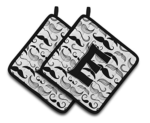 Caroline's Treasures Letter E Moustache Initial Pair of Pot Holders CJ2009-EPTHD, 7.5HX7.5W, Multicolor