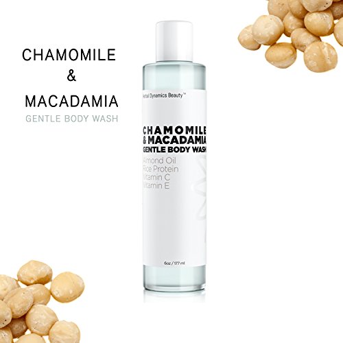 HD Beauty Chamomile + Macadamia Gentle Body Wash with Almond Oil, Rice Protein, Vitamin C and Vitamin E For Soothing and Hydrating Dry Skin, 6.0 oz.