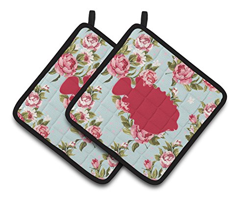 Caroline's Treasures Fish - Blowfish Shabby Chic Blue Roses Pair of Pot Holders BB1016-RS-BU-PTHD, 7.5HX7.5W, Multicolor
