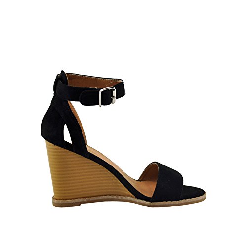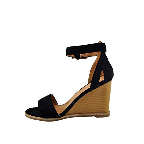 Binding : Apparel Product Description Step up your casual look with these trendy faux suede wedges called Finley-01 by Qupid! Featuring, Soft faux suede uper, Classic open-toe design, Stacked wedge heel silhouette, Lightly cushioned insole for comfort, Easy buckle closure, Rubber sole with grip for traction. 0