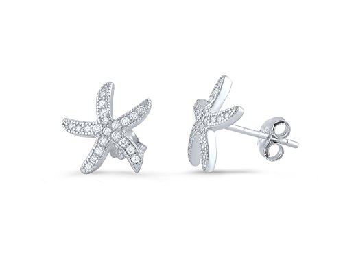 Sterling Silver Cz Starfish Stud Earrings - 11mm
