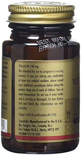 Solgar Vitamin B6 Vegetable Capsules, 100 mg, 100 Count
