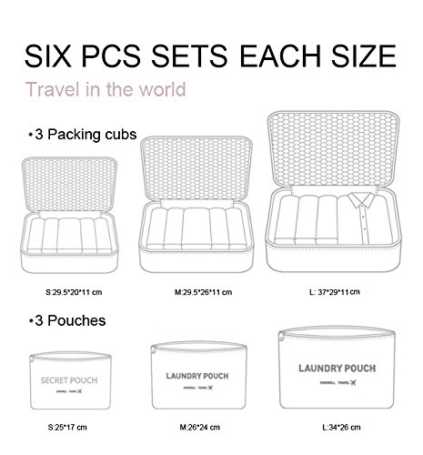 -. Brand : Wastar -. ClothingSize : One Size -. Color : As same pirture -. Department : womens -. Feature : 3pcs Packing Cubes + 3pcs Laundry Pouches: Separate clean and dirty Clothes, protect your clothes from wrinkle, dust and damage / Packing Cubes with Mesh design - Keep inside visible and you can seek your stuff easily; Sturdy handle - Convenient for carrying / Waterproof and Durable Material: Constructed of high-quality thicker coating fabric, high performance for waterproof and tear resistant / Various Lovely and Elegant Pattern, best choice for your relaxed and cheerful travel / Size: 3 Mesh Organizer Bags: Large (14.57'' x 11.42'' x 4.33'') & Medium(11.61'' x 10.24'' x 4.33'') & Small(11.61'' x 7.87'' x 4.33''); 3 Zipper Pouch: Large(13.39'' x 10.24'') & Medium(10.24'' x 9.45'') & small(9.84'' x 5.56.69'')(Please pay attention to each bag actual size Reference Picture) -. Label : Wastar -. Manufacturer : Wastar -. Model : 1987 -. PackageQuantity : 1 -. ProductGroup : Apparel -. ProductTypeName : LAGE -. Publisher : Wastar -. Size : One Size -. Studio : Wastar -. Title : Wastar® 6pcs Packing Cubes Set Travel Lage Organizer - 3 Travel Cubes + 3 Pouches