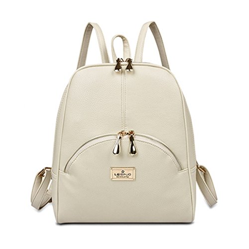 -. Title : Hanshu PU Leather Solid Soft Backpack Bags, Lightweight Tote Double Zipper Daypacks
