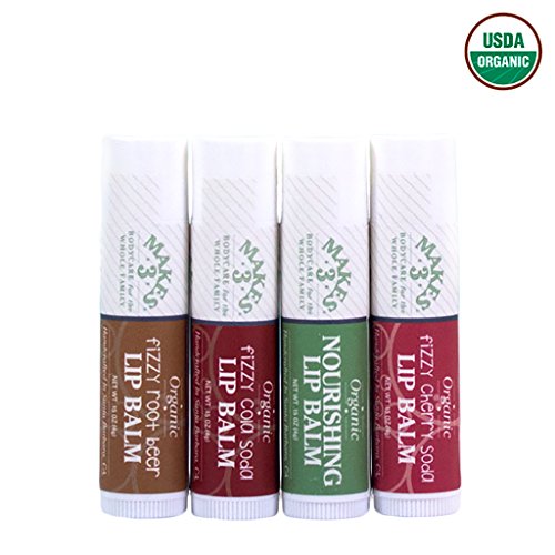 [Product Information]- NATURAL SUN PROTECTION & SWEET KISSABLE LIPS. Organic Coconut oil and organic shea butter both provide natural sun protection - protect your lips from the sun’s harmful rays with the best organic ingredients available. Makes 3 lip balms are so good that people will want to kiss your lips over and over. Grab four great flavors.