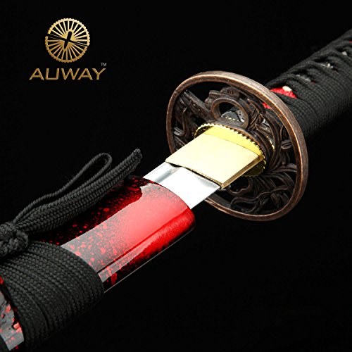 Auway 40" Fully Handmade High Carbon Steel Full Tang Blade Japanese Katana Samurai Sword