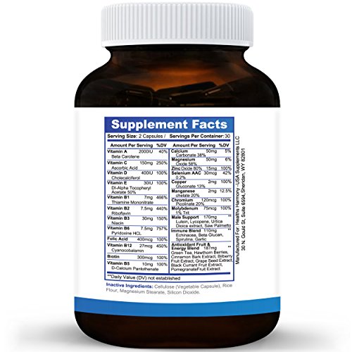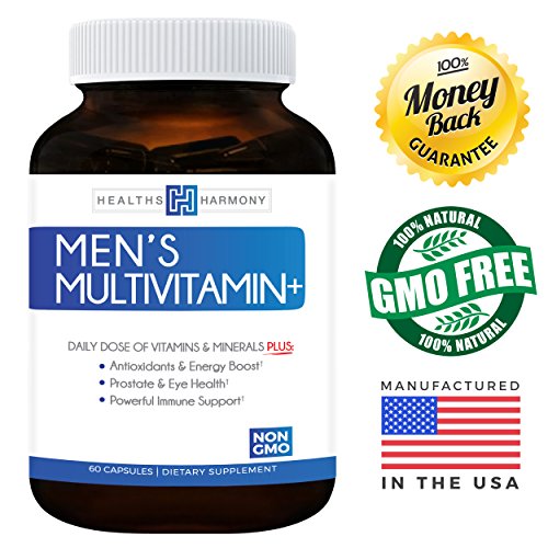 Reduce Stress; Increase Performance Are you overwhelmed when you open your medicine cabinet every day? Have you been wishing someone would make a supplement that provides all the critical building blocks of a well-honed body in just one serving? Men's Multivitamin Plus from Healths Harmony Support your prostate health, aid your immune system, optimize your vision, boost your energy, and fortify your body and mind with a bevy of vitamins and minerals - all with just two vegan capsules per day! Vitamin Cupboard: This portion of Men's Multivitamin Plus is dedicated to increasing your levels of the various vitamins and minerals you need for a thriving body and sharp mind: Vitamins: A, C, D, E, B1, B2, D3, B6, B12 and BE. Minerals: Calcium, Magnesium, Zinc, Selenium, Copper, Manganese, Chromium, and Molybdenum. Prostate Support: This herbal blend is designed to help you maintain your prostate health, which is critical as you age: Lutein, Lycopene, Urtica Dlolca extract, Saw Palmetto. Immune and Digestion Helpers: These herbs are known to aid in immune health in addition to helping your body optimally digest foods: Echinacea, Beta Glucan, Spirulina, Garlic Inflammation Fighters and Energy Boosters: And finally, these herb and fruit extracts help your body fight inflammation and give you the kick you need to get through the day. Feel Great Guarantee: If you're not 100% happy with your new multivitamin combo, just let us know to receive a full refund. Make Sure Your Body Has All It Needs To Thrive; Order Your Men's Multivitamin Plus Today! 0