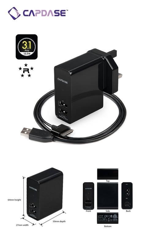 | -Compact and powerful USB-based power adapter -Designed to charge most handheld devices such as Samsung tablet & smartphone* -Exclusive charging circuit for Samsung tablet -Designed for Samsung tablet sync & charge cable included -Power indicator -Includes four changeable plugs for easy travel -Input: 100-240V -Output: 5V DC, 3.1A (15.5W) *To charge using your own cable. ! When charging multiple devices, total current must not exceedspecified limit. |