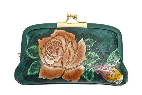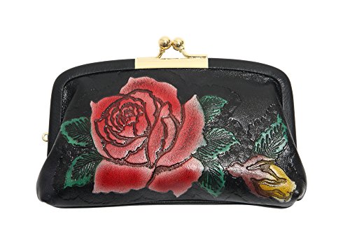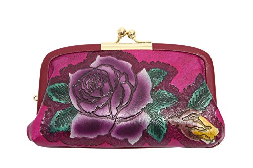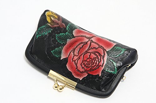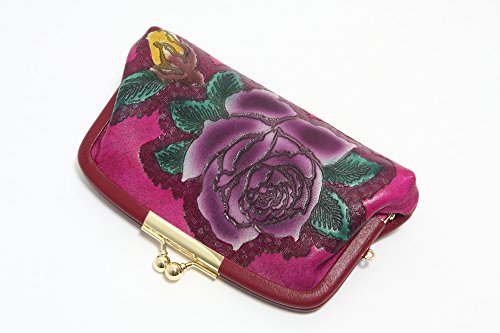 -. Feature : 手染めのバラ柄、がま口財布です。 / サイズ:幅15×高さ11×幅3cm / 素材:牛革型押 / がま口財布ですが親子タイプなのでお札と小銭を分けて入れられます。 / 日本製