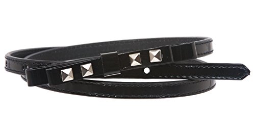 (Monique)/Accessories/Belts Buckles/DIRECT FROM USA/MONIQUE Women Skinny Pyramids Studded Bow Patent Manmade Fashion 10mm Belt