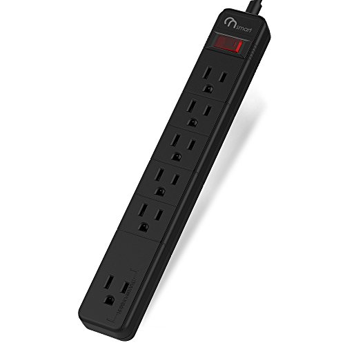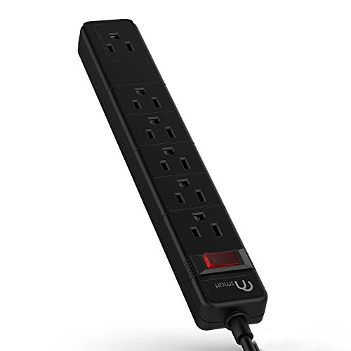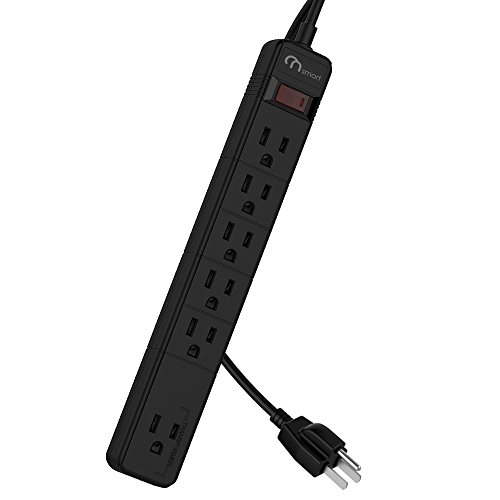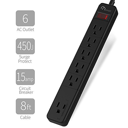 ON Smart Solution 6 Total Outlets Surge Protector Power Strip- 1 Transformer Outlets- 450J Surge Protection- 15amp Circuit Breaker- Power Switch- Wall Mountable- 8 Ft Cord 14 AWG- UL Listed- Black