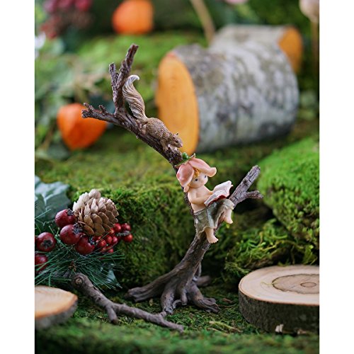 Top Collection Miniature Fairy Garden and Terrarium Garden Sprite Reading Book with Squirrel Statue