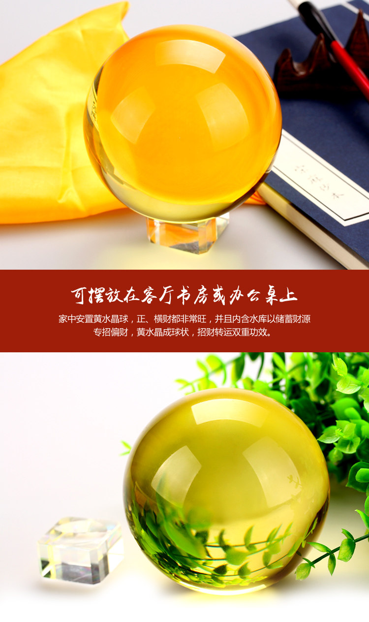 风水合成黄水晶球摆件风水球招财水晶黄晶家居装饰品
